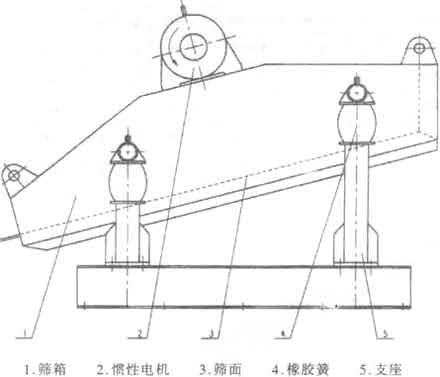 由于激振器布置在篩箱重心的上方,故篩箱兩端橢圓長軸成下八字形,且給料端橢圓長軸的上端朝向排料方向,有利于給到箱機上的物料迅速散開,而排料端橢圓長軸上端逆著排料方向,減低物料運動速度,有利于難篩物料透篩,且圓弧狀的篩面又增大了篩機的有效面積,從而可以提高其處理能力。
